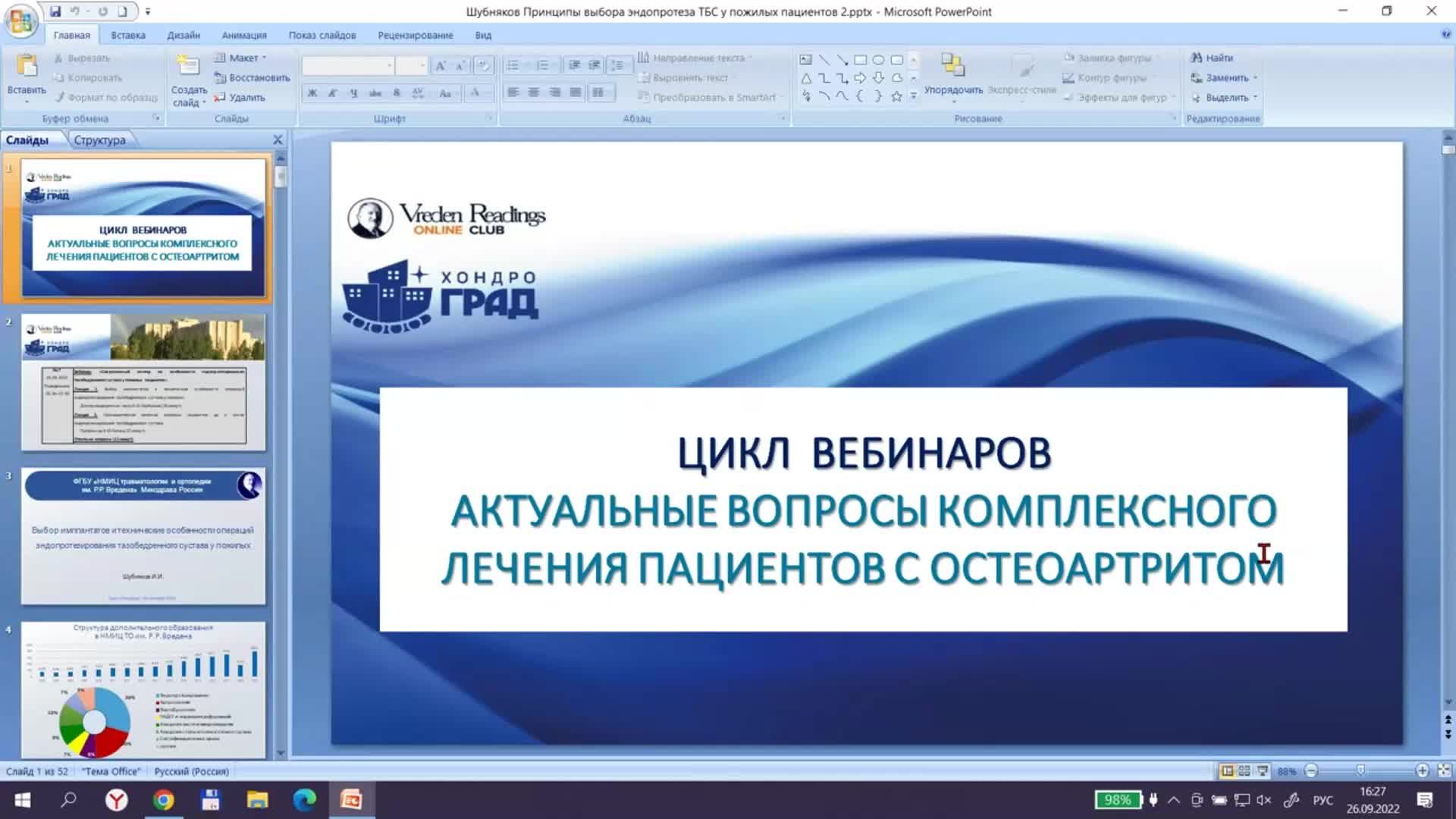 Вебинар «Современный взгляд на особенности эндопротезирования тазобедренного сустава у пожилых пациентов»